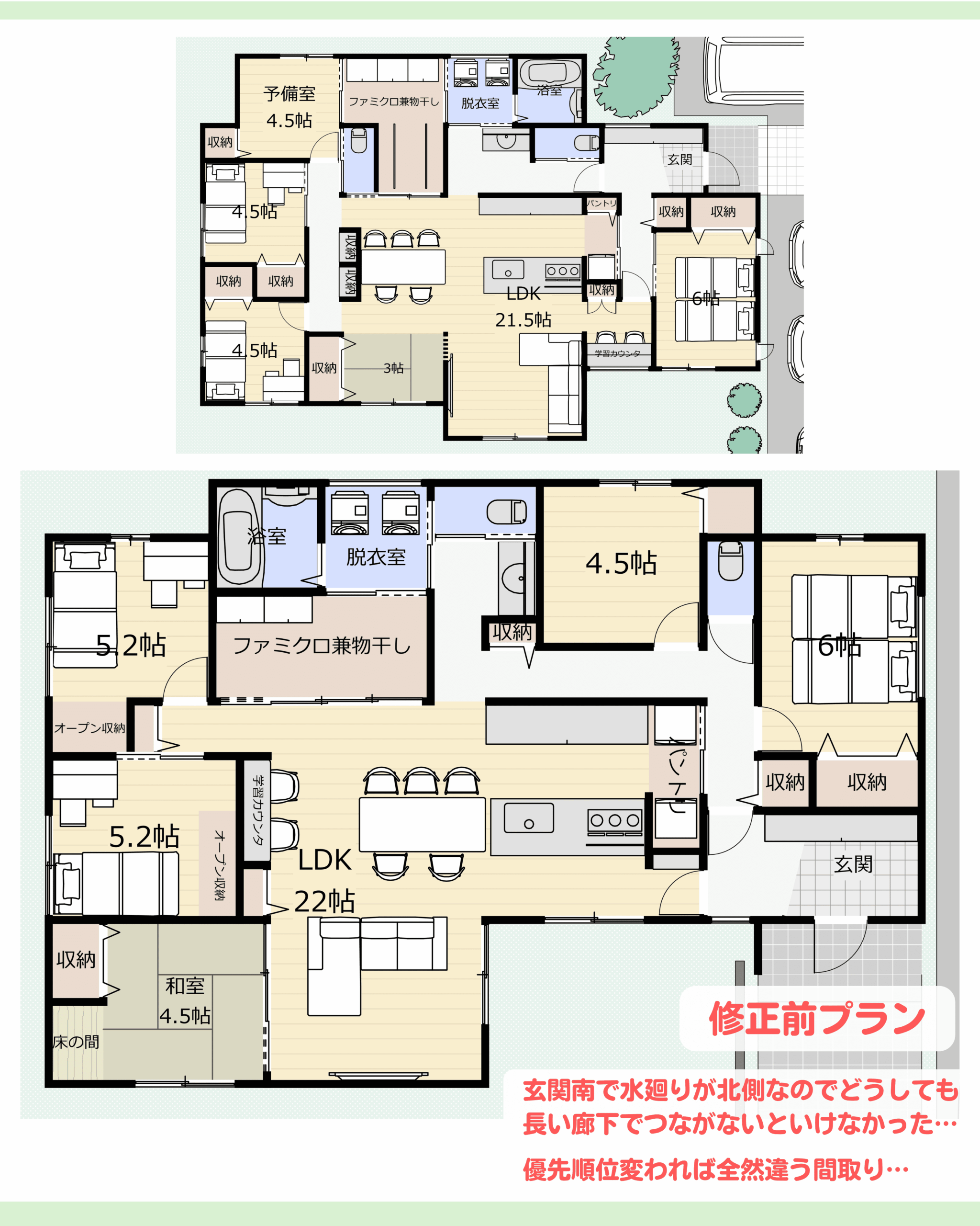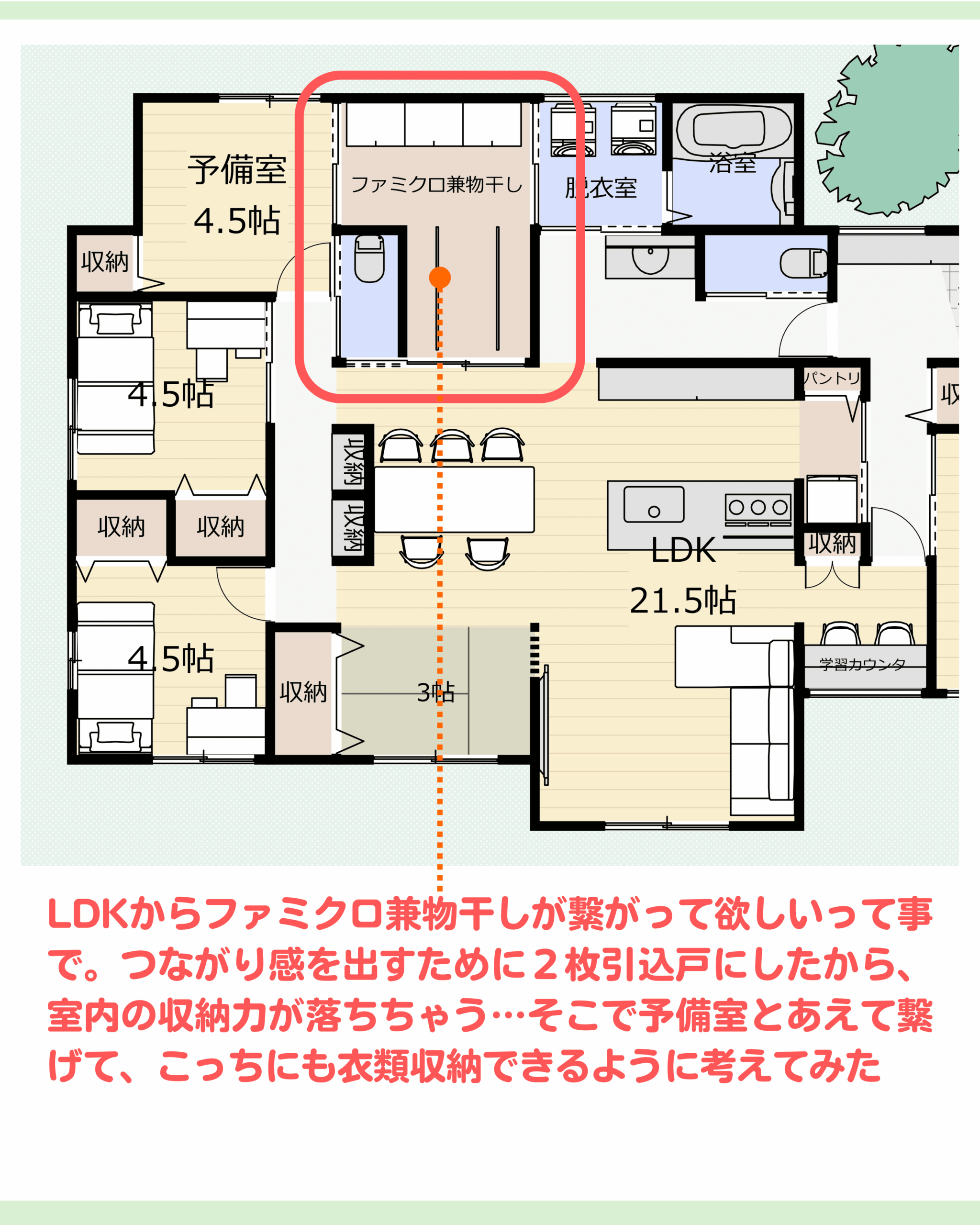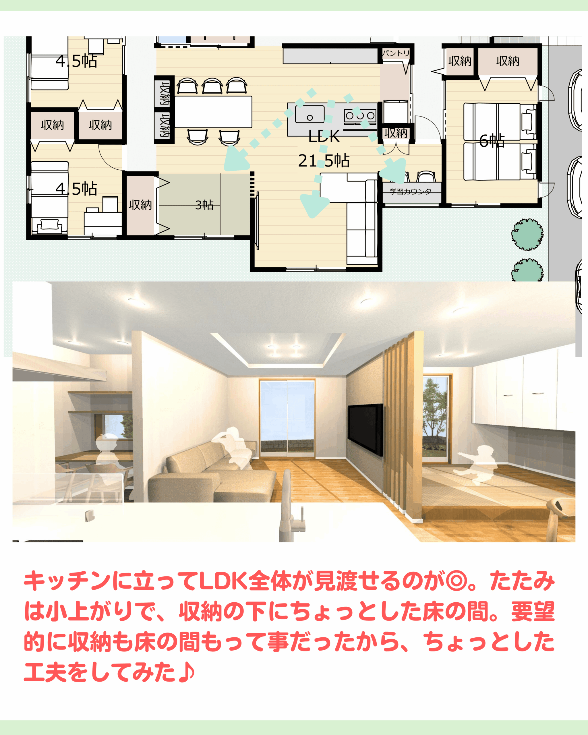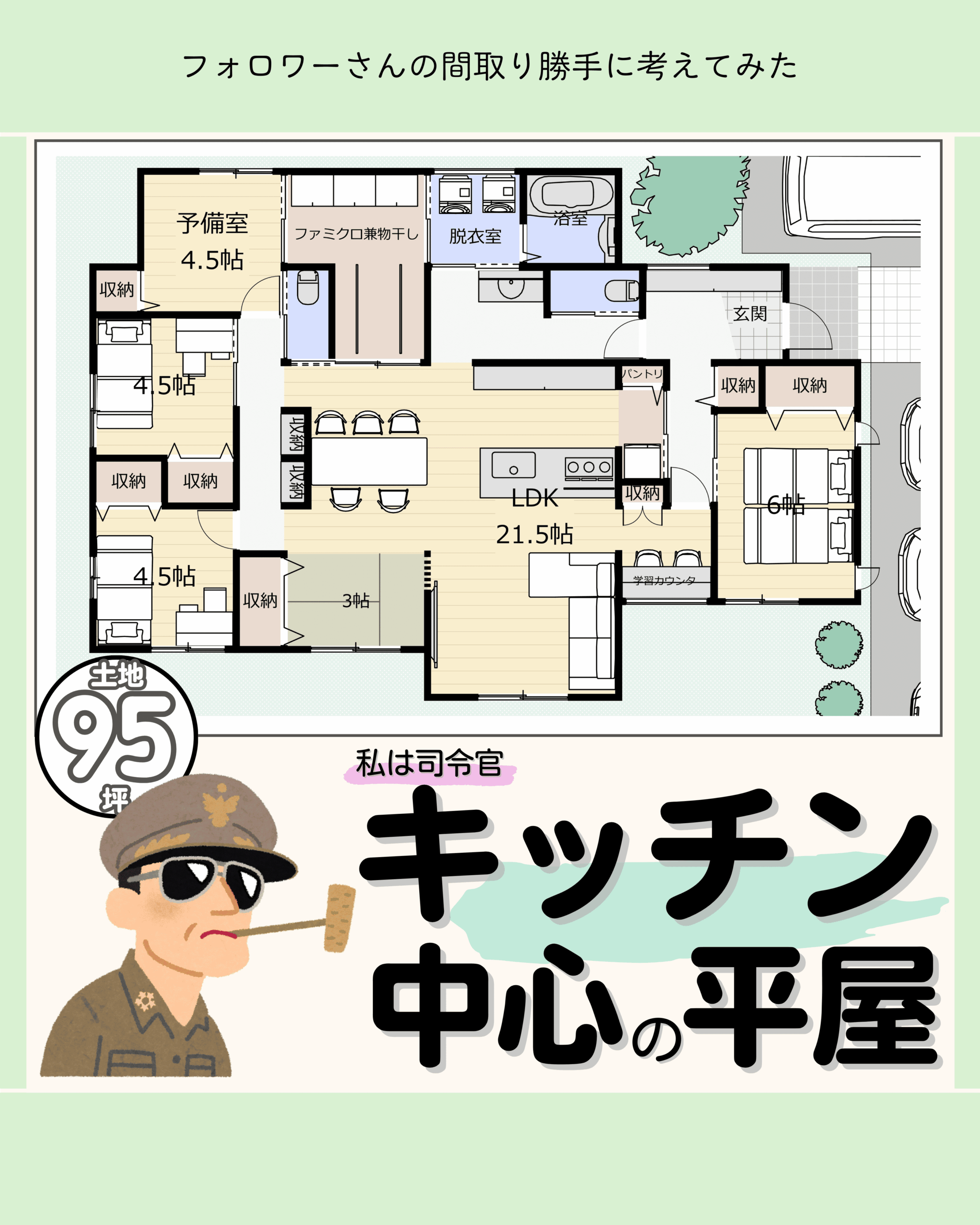 キッチン中心の平屋
