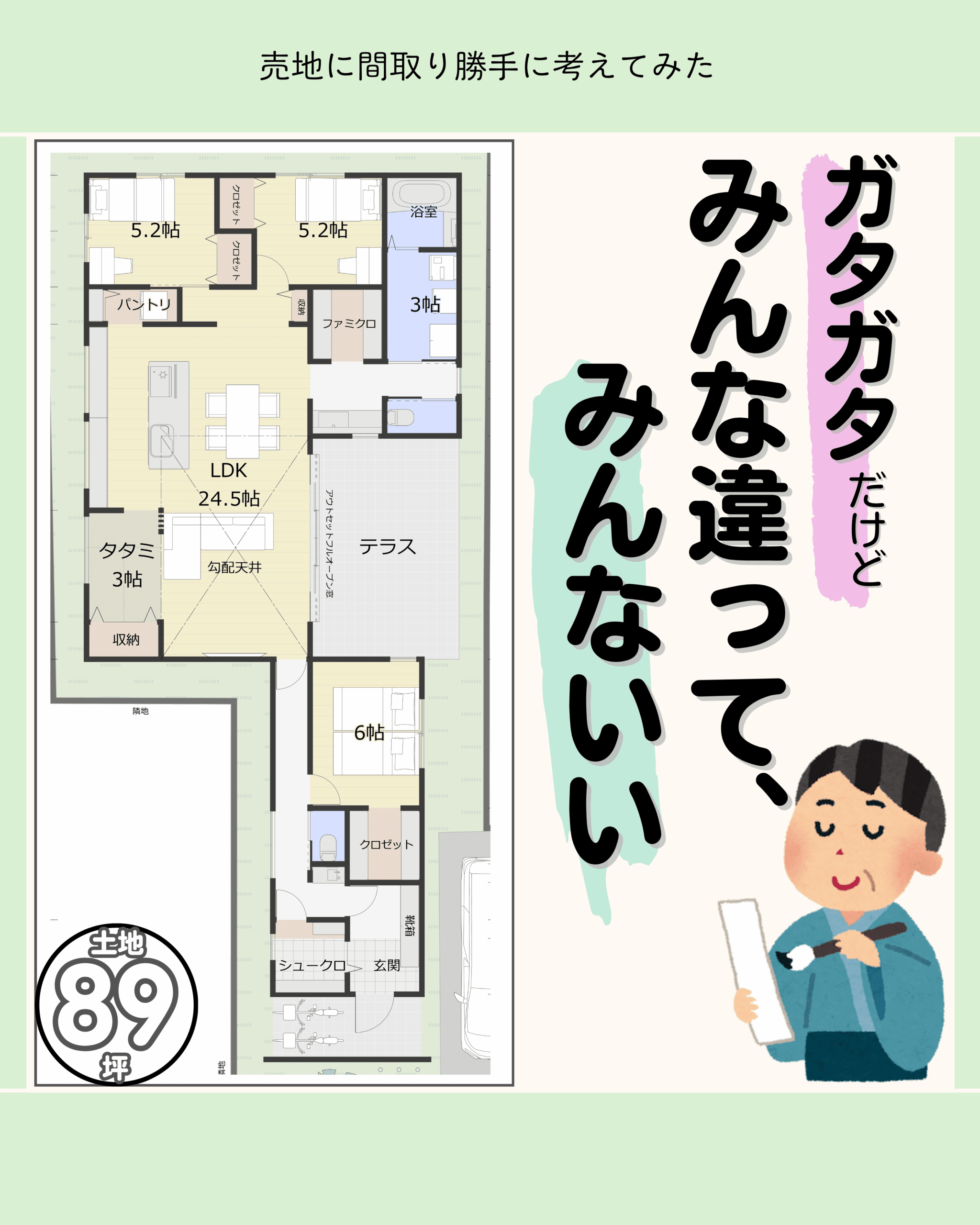 間取り40坪/平屋4LDKタタミコーナー