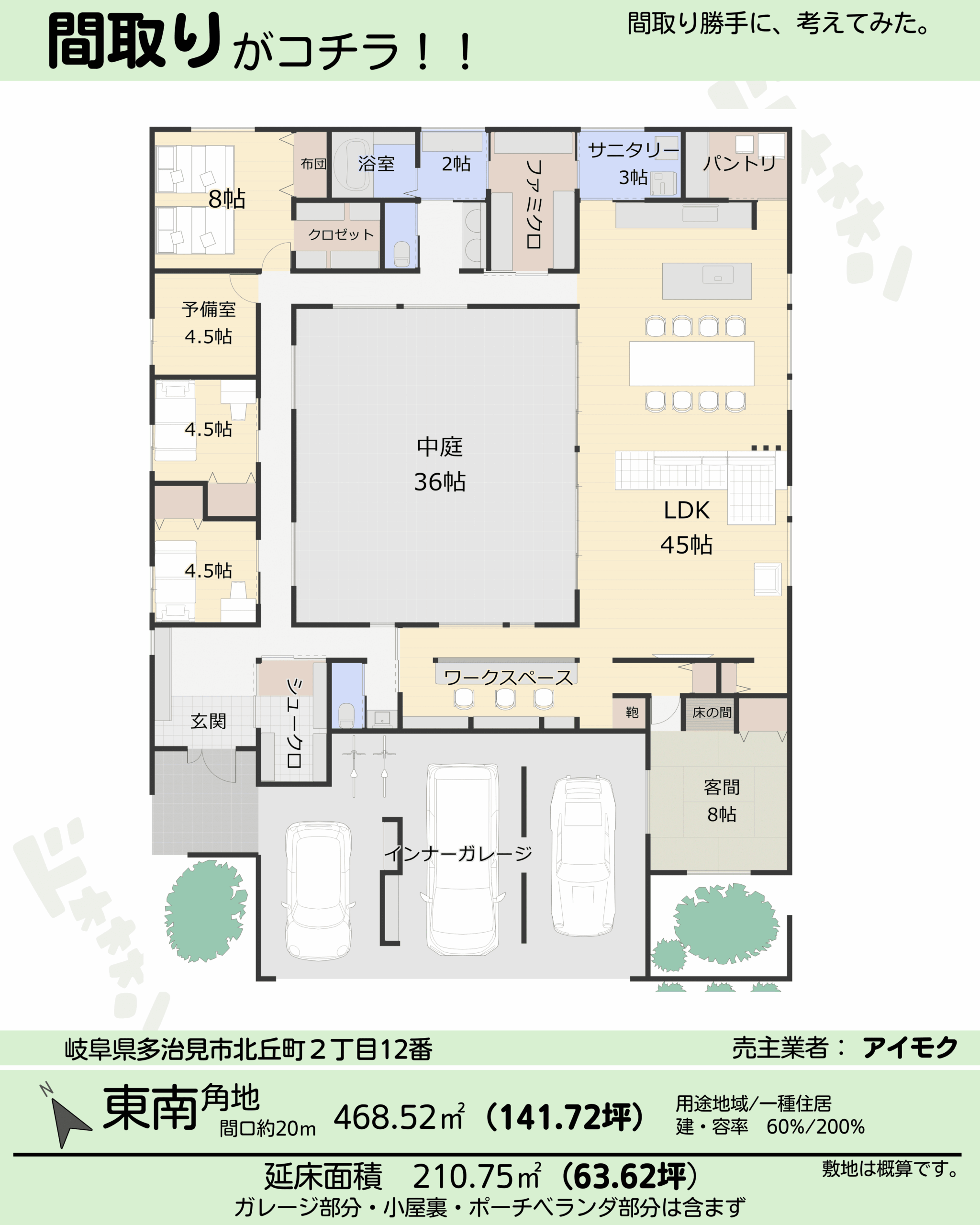 間取り63坪/平屋5LDKガレージ