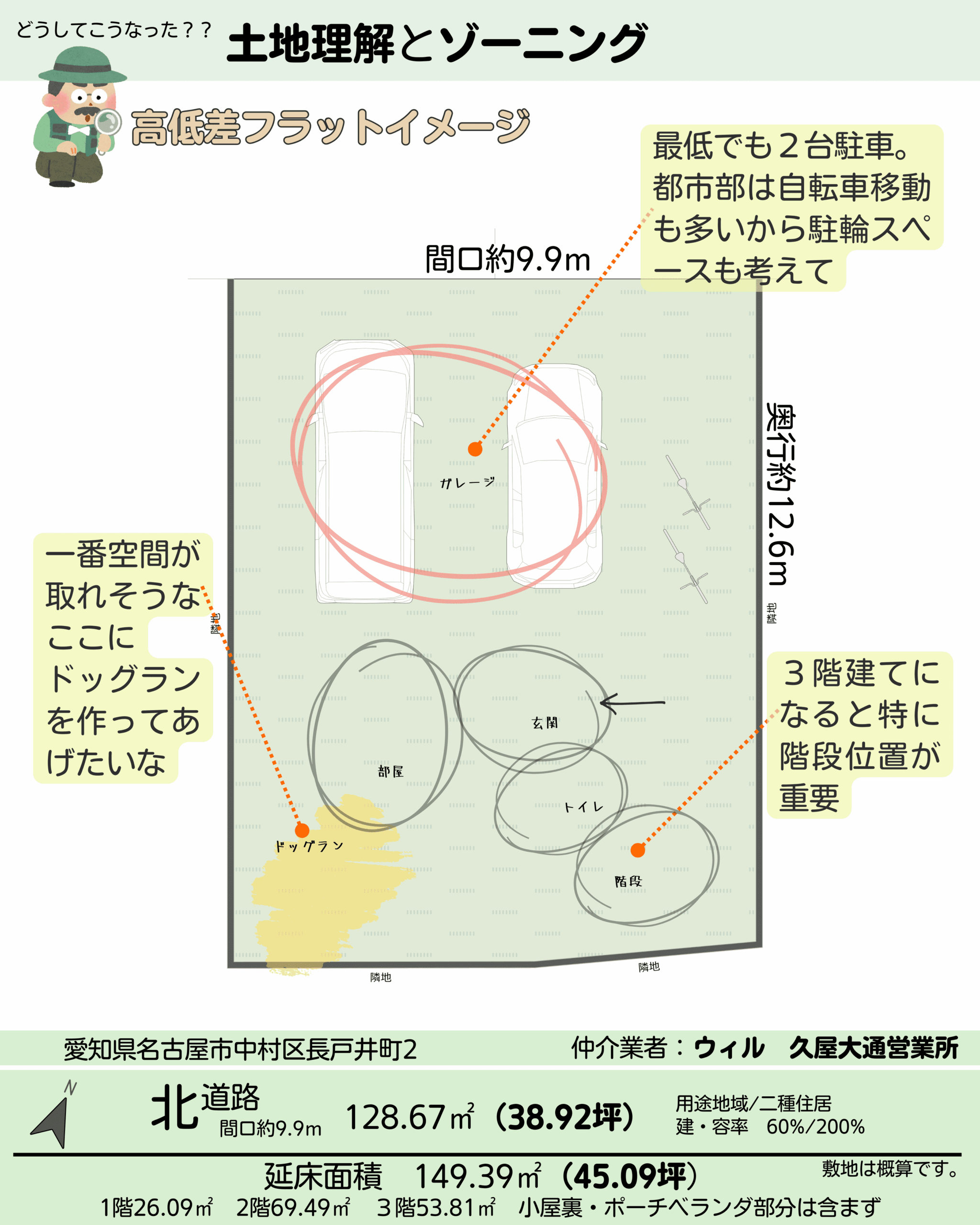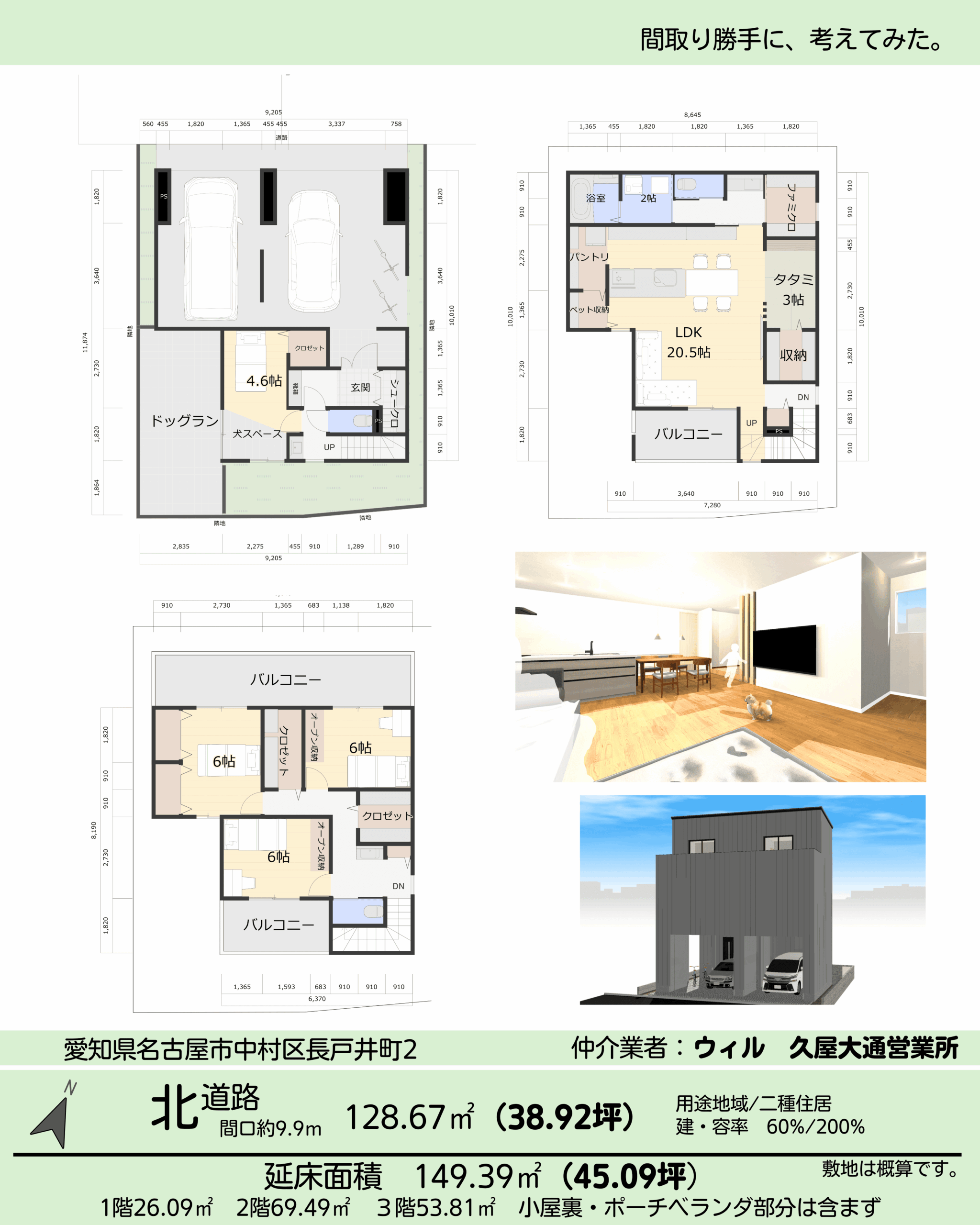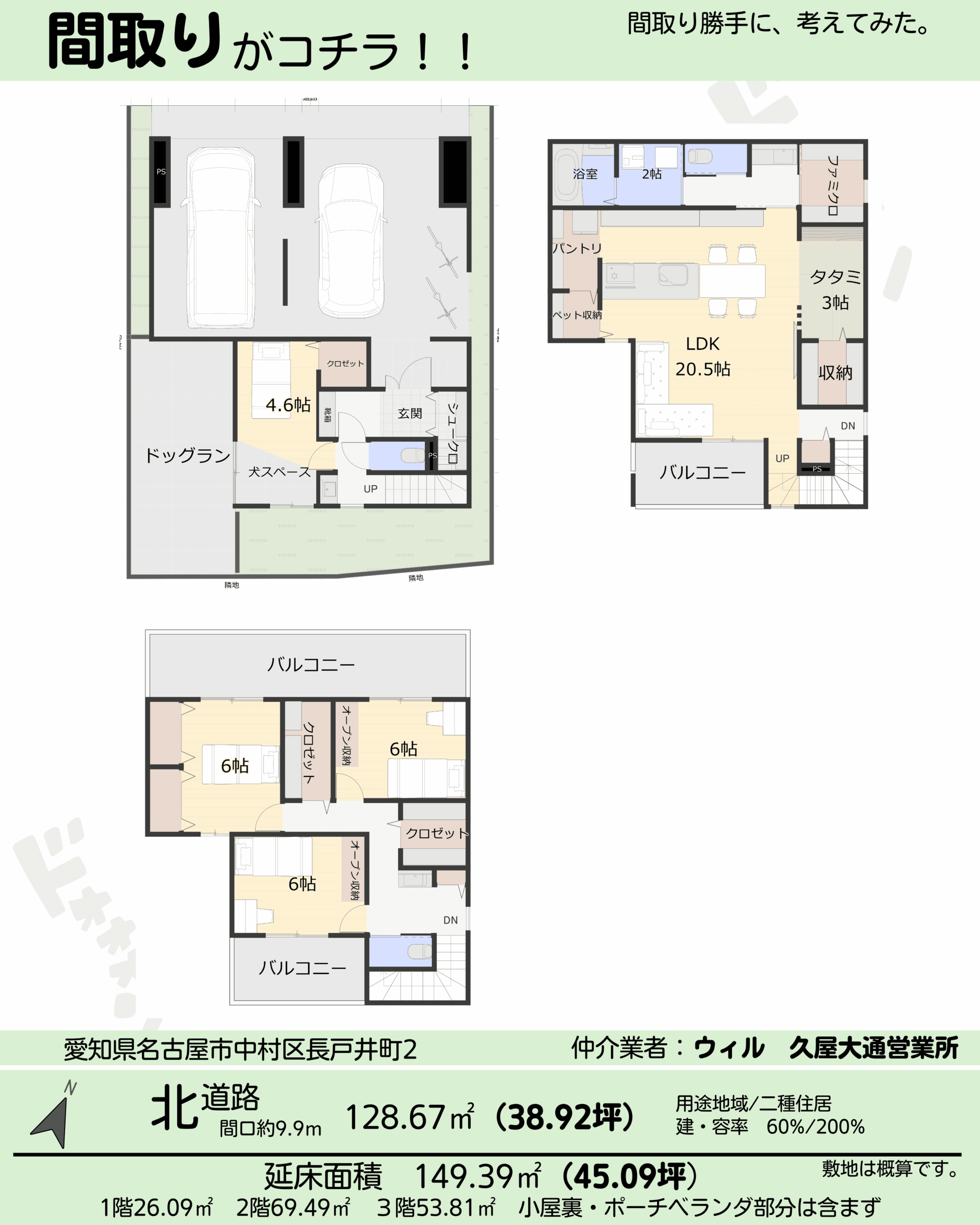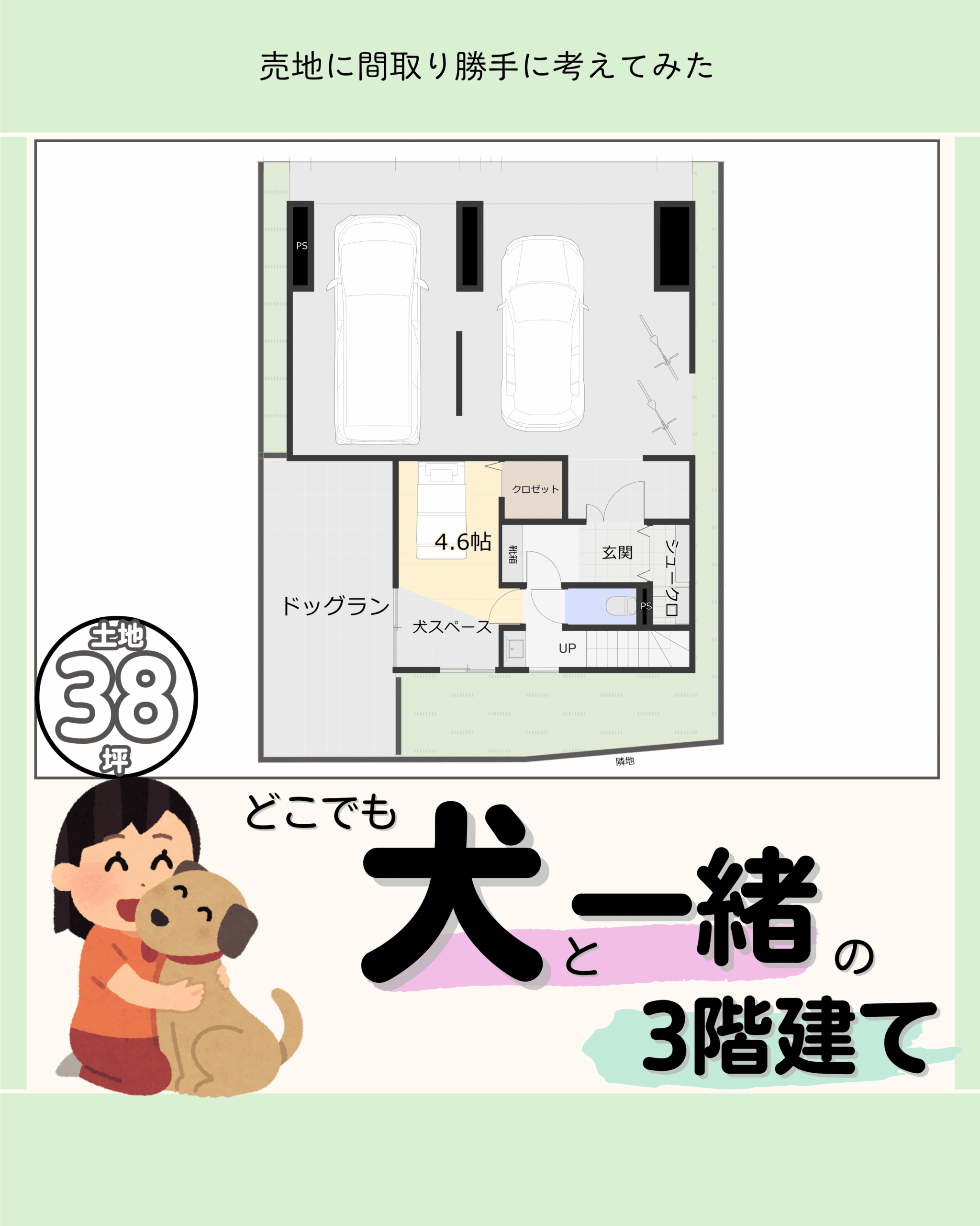 間取り45坪/3階建て4LDK犬と暮らす