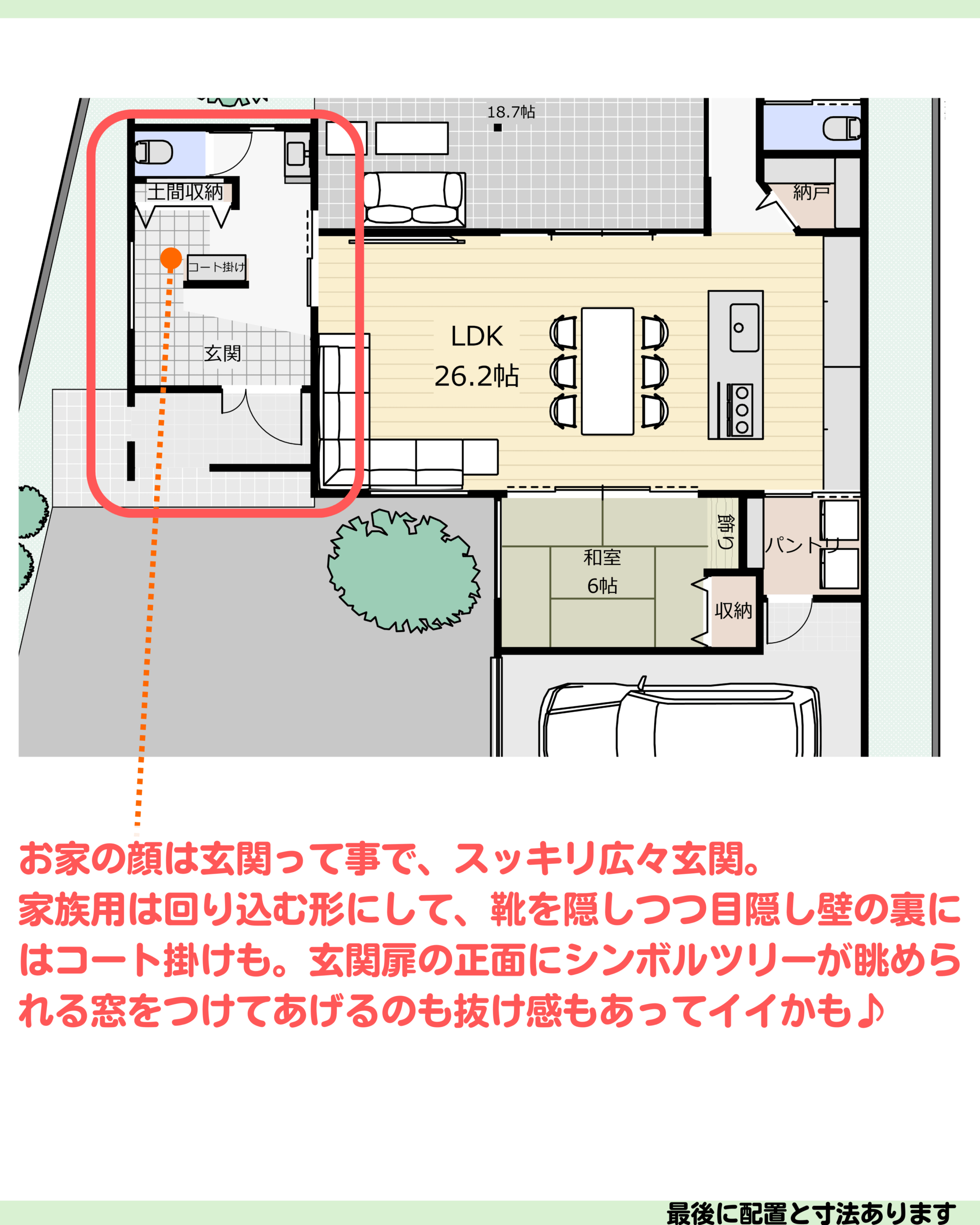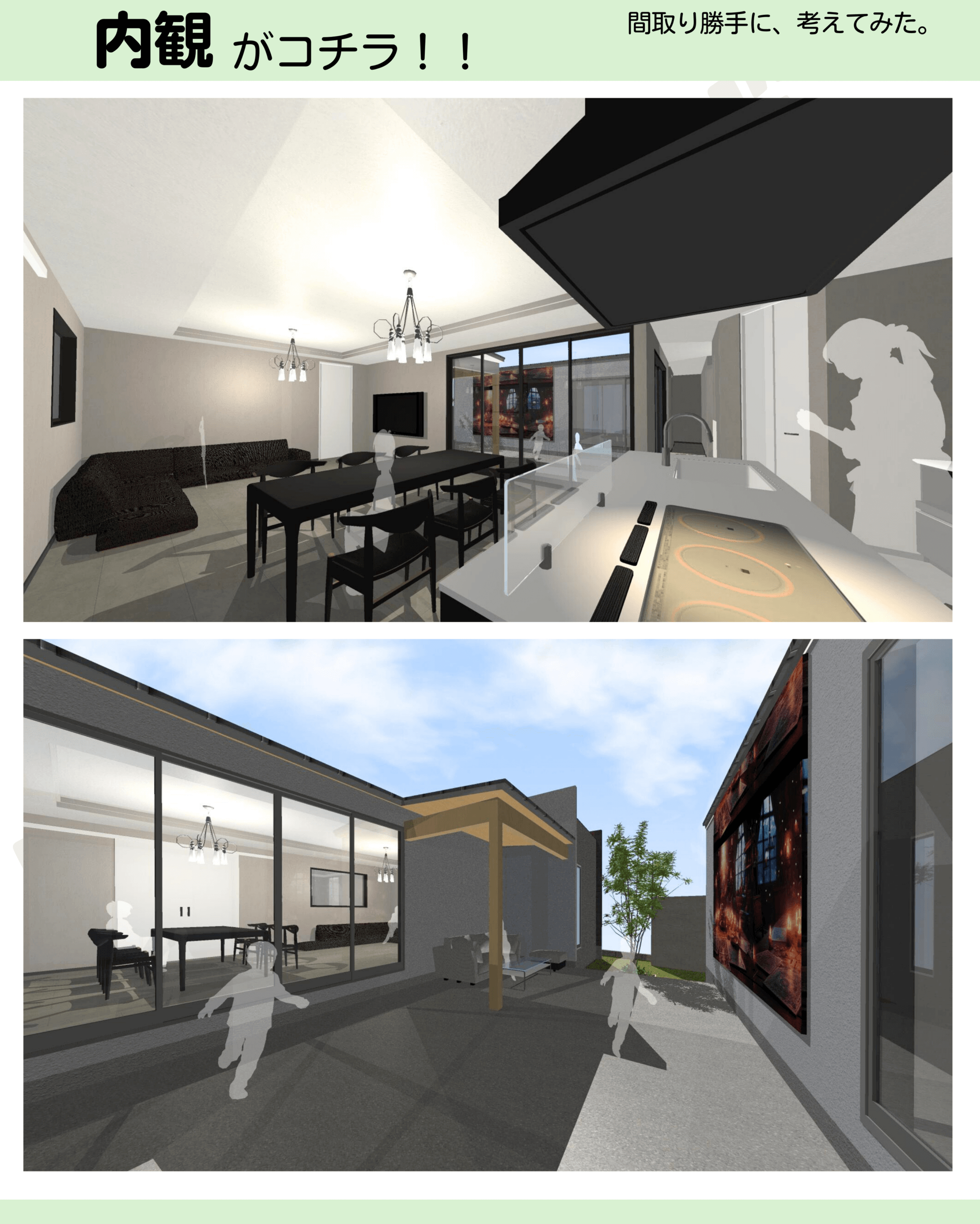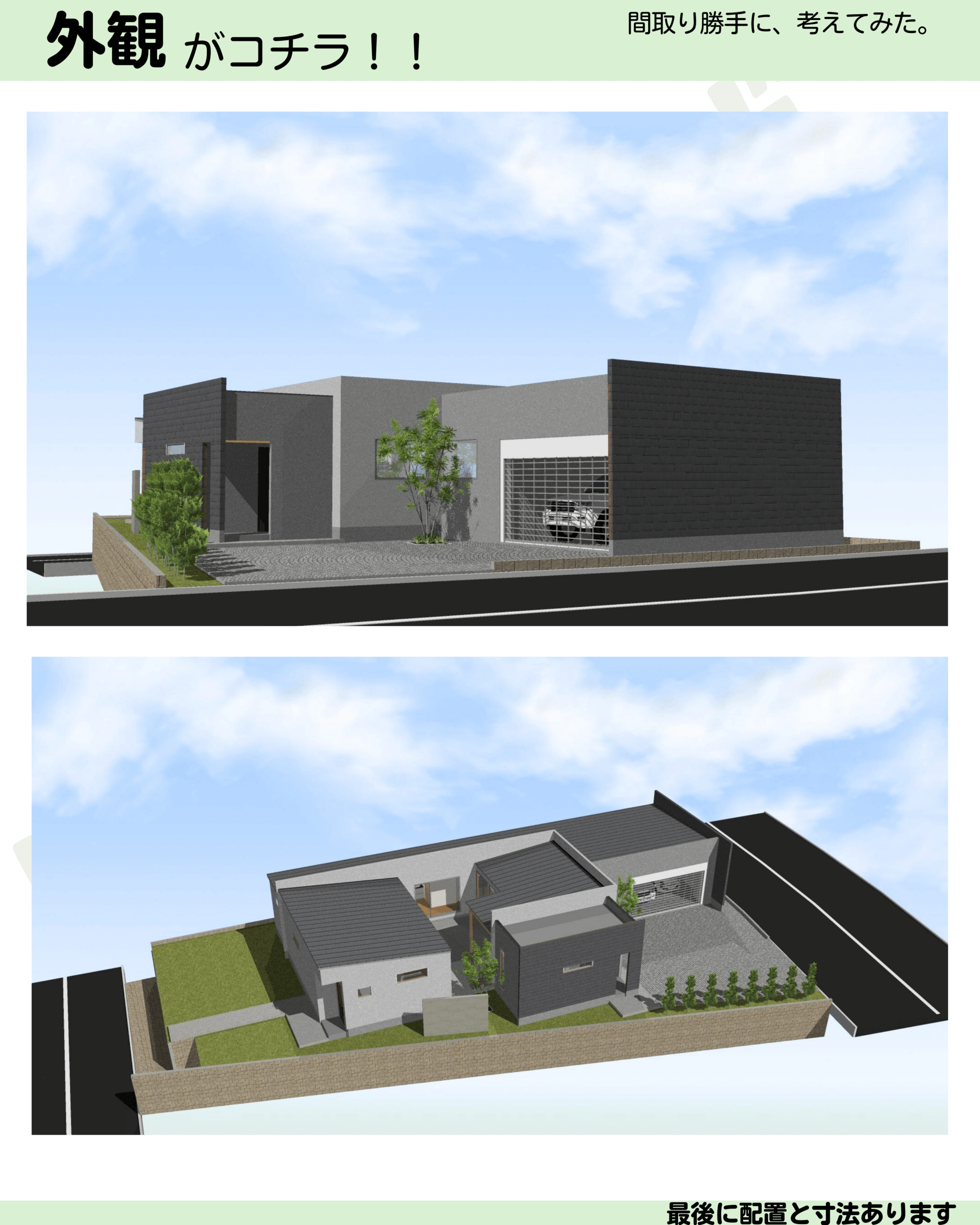 間取り44坪/平屋4LDK中庭ガレージ